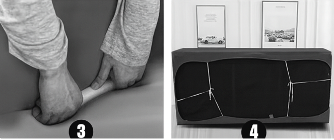 Uhlaďte prebytočnú poťahovú látku do rohov a zviažte šnúrky v spodnej časti pohovky.